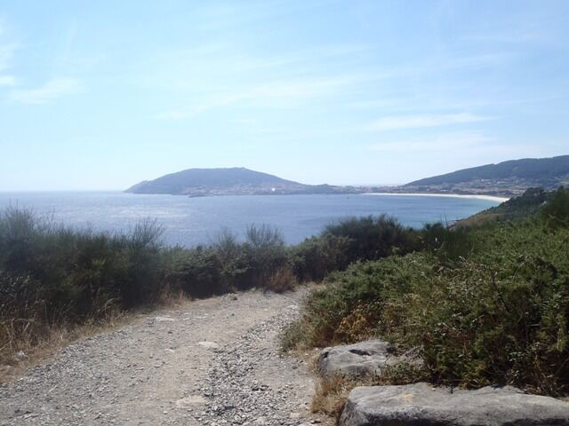 Mooi strandje bij aankomst Fisterra Fisterra in zicht... Koppeltje bezig met hout sprokkelen Zee terug in zicht. Stappen maar...