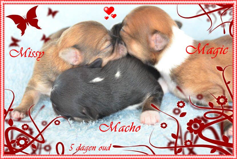 Pupjes Missy Macho en Magic 2 weken oud en oogjes zopas open allen in goede gezondheid !!!