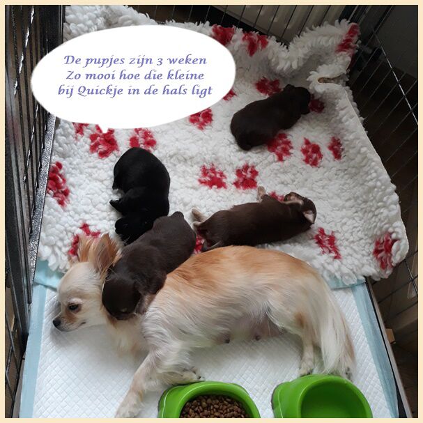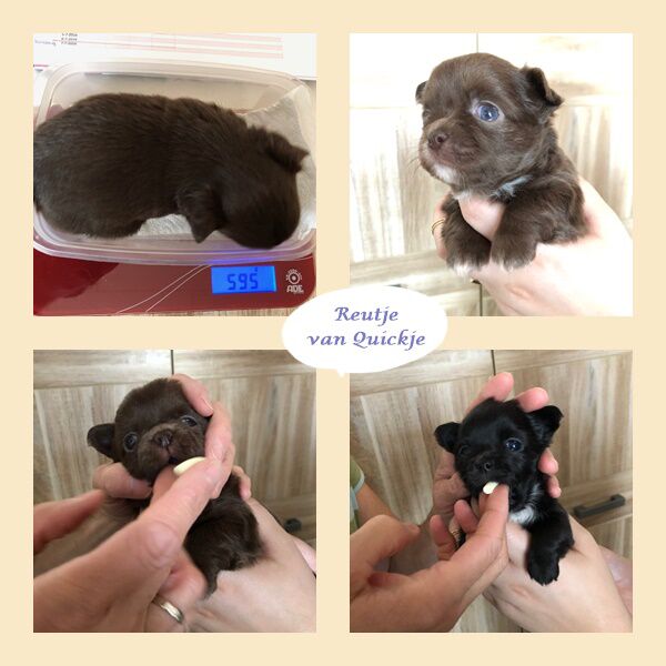 De pupjes van Quickje 4 weken, krijgen hun 2 de ontworming