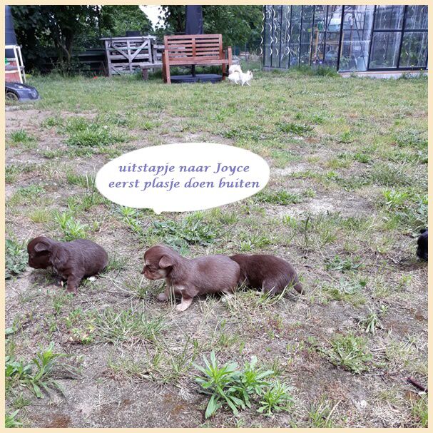 Wat een prachtige dag vandaag, ideaal om te proberen de pupjes buiten hun plasje te laten doen.