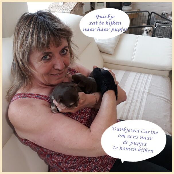 Het is altijd feest als de baasjes komen. Linda en Stephane hebben al 2 chihuahuatjes van hier en ik ben zo blij hen nog eens te zien.
