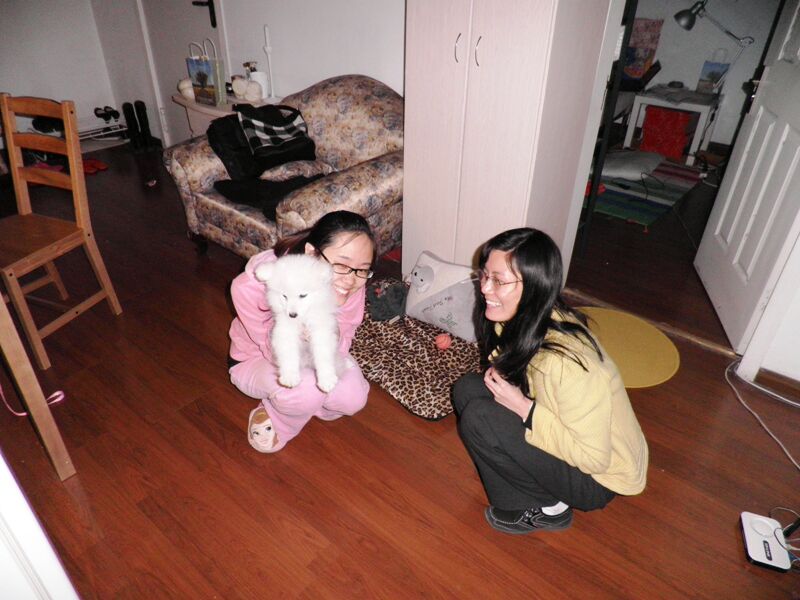 A new member of the family! Nee niemand is bevallen... Men kamergenoten hebben een hond gekocht, een samoyed van 8 weken oud. Katja heeft de naam gekozen: fluffy. Ze waren heel enthousiast over de puppy maar ze waren 1 detail vergeten: ze hadden geen eten, geen drink- en eetbak, geen slaapplaats voor de hond, niets... Alle geluk zijn de winkels hier heel laat open, ik ben dan maar eten enzovoort gaan kopen. Nu blijft er nog maar 1 ding over om te doen: de deur van men kamer dicht doen want em pist nog altijd zwierig in het rond. Ik zal nog wel foto's op de blog zetten.