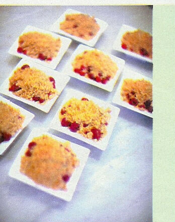 Voor het kruimelgamituur: 190 g patisseriebloem - 125g rietsuiker- 100 g boter- 70 g fijne speculaas- snuifje zout
