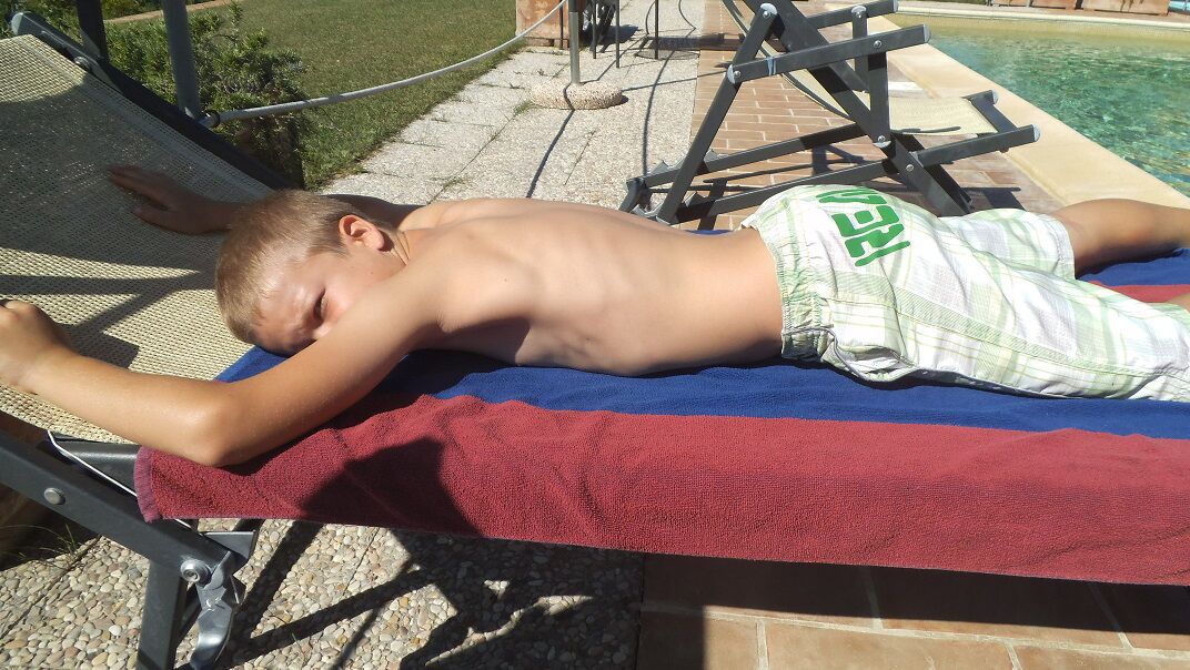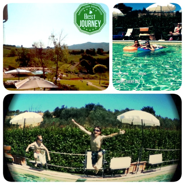 We keerden terug van een uitstapje Pienza en werden door de politie aan de kant gezet. Tamara moest haar rijbewijs laten zien, volgens haar omdat ze er zooooo jong uitziet, volgens onze zonen omdat ze zo klein is. En ik, ik zal't in 't midden laten maar we lagen wel allemaal in een deuk ! Een meevaller was dat ze haar nieuwe chacos meehad en toch maar voor de zekerheid haar rijbewijs uit de vorige had gepakt...