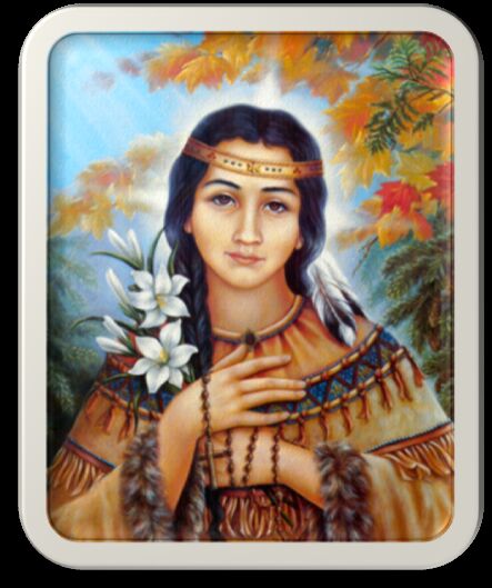 Wikipedia: De zalige Kateri Tekakwitha (Osserneon, New York 1656 - Caughnawaga, Canada 17 april 1680) was de dochter van een christelijke Algonquinse moeder en een vader van de stam der Mohikanen. Toen haar ouders gestorven waren, liet Kateri zich door een Jezuïet tot het christendom bekeren en werd zij als enige van haar stam in 1676 gedoopt. Toen zij hierom met haar leven werd bedreigd, vertrok zij naar het 300 km noordelijker gelegen Montréal. In het nabijgelegen Caughnawaga leefde zij als kluizenares verder een leven van boete en gebed. Op 22 juni 1980 werd Kateri Tekakwita zalig verklaard door Johannes Paulus II. Haar feestdag is 14 juli in de Verenigde Staten en 17 april in Canada. Ze is patrones van het milieu en ecologie.