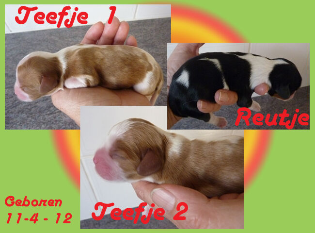 Ik ben het tricolor teefje en weeg 414 gram ! Het is maar 1 gram minder dan mijn broer , dus ben ik fier dat ik een slank figuurtje heb !