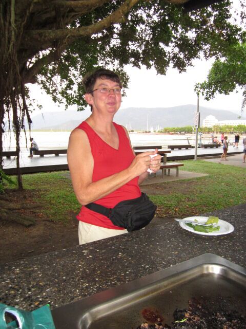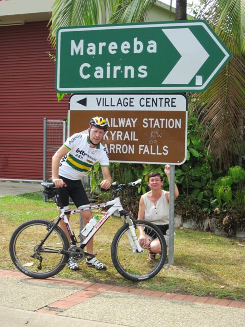 Over de highway naar Mareeba gefietst, de laatste letterlijk rechte rit in lijn voor de Croco nu dinsdag start. De benen voelen goed aan en het uitzicht op het regenwoud blijft indrukwekkend. Gerda geniet dan weer van alles wat ze ziet onderweg: termietenheuvels; velden vol suikerriet, cederbomen, mango en veel tropische vogels ! Clyde heeft ondertussen zijn klassieke muziek uitgezet en vervangen door hits uit het midden van de jaren 6O, dat klinkt al stukken beter !