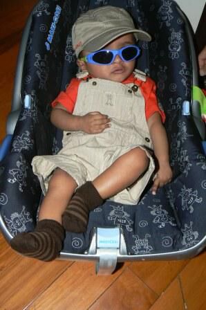 Het blauwe is zijn 'maxicosy' waar hij een ganse dag ingelegd werd. Het witte is zijn bedje. De zuster is het hofd van het weeshuis en de 2 Afrikaanse dames hebben hem steeds verzorgd. Zij waren ook zeer geemotioneer toen we langskwamen.