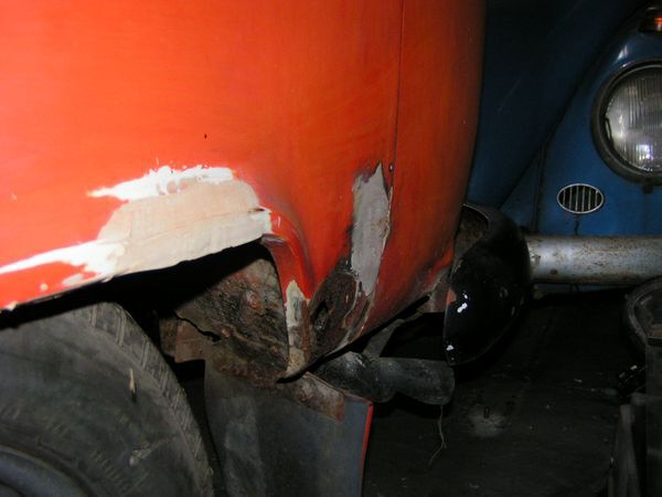 toch een plekje waar laswerk gaat nodig zijn om hem helemaal strak te krijgen, maar dit is echt miniem.... De achterflank een de bestuurderszijde heeft een stukje plaatwerk nodig en ook achteraan op de "laadklep" zijn 4 bouten gezet om iets op te bevestigen. Die gaan er af en dat wordt weer strak gezet om een gave klep te hebben.