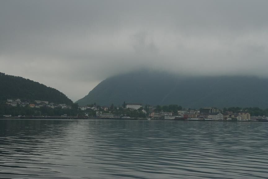 Het weer was vandaag iets beter in de zin dat er wat minder wind was en dat ik gefietst heb zonder nat te worden, verder bleef het wel koud en grijs. Vanmorgen kon ik tenminste wel zien wat er tegenover mijn motel lag (foto 1), gisteren lag dit dus achter een grijs gordijn. De rit naar Kilboghamn was met 16 Km iets langer dan ik berekend had maar het is gelukt met mijn beperkte ontbijt. In Kilboghamn moest ik nog een tijdje wachten op de boot, waarop ik dan een iets uitgebreider en iets duurder ontbijt nam. Tijdens deze veerdienst, van een klein uurtje, passeerden we dus 66° 33' noorderbreedte oftewel de poolcirkel (in Noorwegen gemarkeerd me een wereldbol, foto 3). De poolcirkel is de meest zuidelijke plaats waar bij de zonnewende (dus omstreeks 21 juni) de zon niet onder gaat. Nu zijn we nog zo ver niet maar vanaf over enkele dagen gaat in mijn rijk de zon niet meer onder. Niet dat ik daar zoveel van zal merken aangezien ik dan in het algemeen reeds in mijn slaapzak lig en het ook nu al gewoon licht blijft. Bij goede omstandigheden zal ik echter wel eens wakker blijven om het fenomeen mee te maken. Over de rit van vandaag kunnen we verder kort zijn want dat was ze ook. Vanaf het verlaten van de boot was het nog eens 28 Km tot de volgende veerdienst, voorlopig de laatste op deze weg, tot aan het eind van de Rv 17 in Bodo de langere veerdienst naar de Lofoten wacht. Op die boot mocht ik, vanwege de zondagsdienst, alweer een uurtje wachten voor een tochtje van 10 minuten, hoewel ik moet toegeven dat er niet genoeg verkeer was om een keertje meer te varen. En nu sta ik met mijn tentje op een camping een kilometertje voorbij de laatste veerdienst in Foroy, nabij Halsa. En hier regent het ook weer af en toe een keertje. Km vandaag: 45 Km totaal: 3247