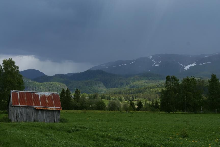 Grijs en koud vandaag maar niet nat. Eerst wil ik echter nog even doorgaan over gisteren. Ik heb al enkele keren geschreven over "het keukentje", daarom even iets meer uitleg. Meestal (zoals gisteren) is dit slechts een lokaaltje met een afwasbak en een werktafel met een elektrische kookplaat met twee elementen. Soms (zoals eergisteren) is het een volledig, verwarmde, uitgeruste keuken, inclusief elektrisch fornuis met oven en ijskast. Voor mij maakt dit niet veel uit, ik gebruik sowieso slechts een van de kookelementen. Wel is het voor mij, vooral bij slecht weer, een plaats waar ik een beetje comfortabeler zit dan in mijn tentje en waar ik electriciteit vind om mijn blog te doen. Ten tweede wil ik nog even terugkomen op die, vermeende, verkeerde beslissingen van gisteren. Misschien was het niet duidelijk maar dit sloeg op de beslissing om niet in Vormstad te blijven maar door te gaan, de beslissing om niet landinwaarts te gaan klimmen, de beslissing om "spook"campings na te jagen terwijl ik vrij grote zekerheid had over een camping enkele kilometers verderop, ... . Toen gisteravond na het eten en afwas echter de zon weer even scheen en ik de foto's voor vandaag kon schieten (de foto's van vandaag zijn dus eigenlijk allemaal van gisterenavond), toen wist ik dat al die beslissingen nog zo verkeerd niet geweest waren. Bovendien liep er langs de camping een bewegwijzerde fietsroute naar Trondheim, wat het leven vandaag toch enigzins simpeler maakte. De route bracht me, langs de kleinere, rustigere wegen, rechtstreeks tot in het centrum. Even voor twaalf was ik in Trondheim en een half uurtje later zat ik op mijn kamer in de herberg. Verder valt er over de rit van vandaag weinig te vertellen. Even klimmen vandaag, niets in vergelijking met de eerste twee weken maar toch telkens een extra inspanningetje. Verder vandaag ook weer die pittige noorderwind die het weer pittig koud maakte maar die ik vandaag vooral van opzij had omdat ik oostwaarts ging richting Trondheim. Trondheim is toch een merkteken op deze trip, voor mij betekent dit het einde van Zuid-Noorwegen. Nog niet echt het begin van het noorden maar toch al het einde van het zuiden. Km vandaag: 40 Km totaal: 2643