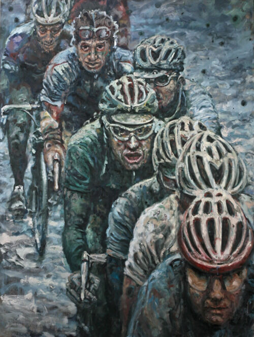 Het is een mega-evenement die kan bogen op een puike organisatie maar ik krijg pas een goed gevoel diep in de Vlaamse Ardennen wanneer de grootste zwermen sprinkhanen ons voorbij gestoven zijn. De grauwgrijze lucht is een adembenemend schouwspel van dreigende regenwolken tegen een achtergrond van hellingen die nog moeten komen. Met het zicht op de molens in Zwalm proberen Arnold en Freddy tevergeefs een molentje op te zetten en te rijden met afwisselend kopmanschap. De Hollanders zijn eerder spaarzaam in hun inspanningen en laten de twee Vlamingen de kastanjes uit het vuur rapen.