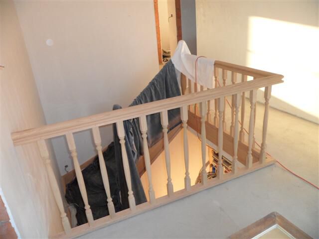 We hebben een eiken trap. Ik heb hem zelf behandeld. Plezant werkske zanne!!! Om dan ook nog eens de juist kleur te vinden. Maar we zijn er heel content van. Waar de gaten in de muur zijn langst de trap, moet nog verlichting komen. De hal is nog niet in primer geverfd.