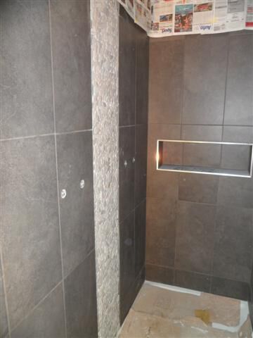 Dit weekend weer hard gewerkt. De natuursteen ligt eindelijk en is ingevoegd! Ikke kei blij. Ik denk dat ik elke steen wel 3 keer heb vastgehad. In de hal heb ik een foto getrokken van toen de vloer nog nat was. Zo gaat hij worden als hij behandeld is. Die van de keuken is al gedroogd. Deze week moeten we de "cementfilm" er nog afschrobben. (met witte zand en water) Kristof is samen met Vanoppen (sanitairman) bezig geweest aan de chauffages enzo. Normaal gezien kunnen we ze dinsdag opzetten. Vorig weekend en het weekend daarvoor heeft Kristof samen met Roger de chauffages opgehangen. De pijpjes van de centrale verwarming (zwart pijpje aan de achterkant) en de ventilatie (grijze "champignon" aan de zijkant) zijn ook geinstalleerd op het dak. Nog enkele sfeerfoto's. |
