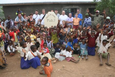 Yves wil tussen de spaghetti en de boontjes nog wel even prijs geven dat hij deze dagen het meest onder de indruk is geweest van de vriendelijkheid, de guitigheid en de hulpvaardigheid van Willy. Als we net gegeten hebben worden we al geacht weer richting school te gaan voor de seremonie. Voor de helft van ons lukt het ons te rekken tot na de koffie. Wie nog schone kleren heeft kleed zich vlug om en Diego heeft voor deze gelegenheid zijn matrozenpakje aangetrokken. Bij het schooltje aangekomen is het er al flink druk. Ik kijk mijn ogen uit want sinds gisteren is er veel veranderd. Het kruinboompje is echt nog heel klein. John weet me te vertellen dat het een Miniqiti boompje is. Onze namen op de steen zijn in twee kleuren aangebracht. Eierschaalgeel en roestbruin. Het zijn dan wel onze namen die er op staan, maar die van jullie horen er zeker ook bij. Want zonder jullie ruggesteun zouden wij hier nu niet zijn. Over een of twee jaar zullen regen, wind en zand onze namen er wel afgespoeld hebben en dat is heel goed. Op het monumentje staat heel sober in roestbruine en zwarte letters: Shule ya awali Mats. Daaronder is met een paar lijntjes een poppetje getekent. Steven heeft dat mooi gedaan. De keien rondom het schooltje hebben allemaal een lik witte verf gekregen, een heel vriendelijk gezicht. Barbera en Maggi zijn de ingangspoort met breed rood lint aan het versieren. Overal lopen kindjes hun ogen uit te kijken. Moeders staan in groepjes te wachten op wat komen gaat. Ze knikken met z`n allen vrolijk jaAls ik Masabeda? vraag. Oude vrouwen en mannen zitten in de schaduw van het gebouwtje met elkaar te praten. Jonge mannen kijke naar de metselaars die nog druk bezig zijn. De Timmerman is nog aan de deur aan het schaven, hij draagt een prachtige Omaschort. De Afritank staat netjes op zijn plaats. De manager is met zijn helpers de laatste hand aan de dakgoten aan het leggen. Vandaar worden twee buizen naar de tank geleid. Baba staat nog met de schop in de hand bij de laatste hoop cement voor vandaag. Het glas voor de ramen wordt met veel zorg in de metalen kozijnen geplaatst. Dan zie ik een meisje in het T- shirt dat ik haar een paar dagen heb gegeven omdat het hare zo aan flarden lag. Ik heb het zelf vele jaren gedragen, maar als ik zie hij beeldig het haar staat, dan interreseren me mijn overpeinzingen over het wel of niet geven me niet meer.