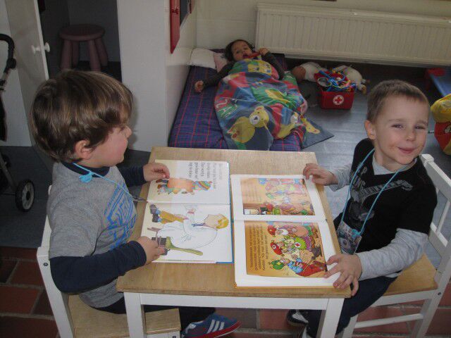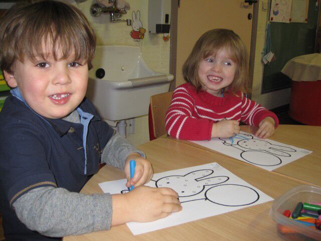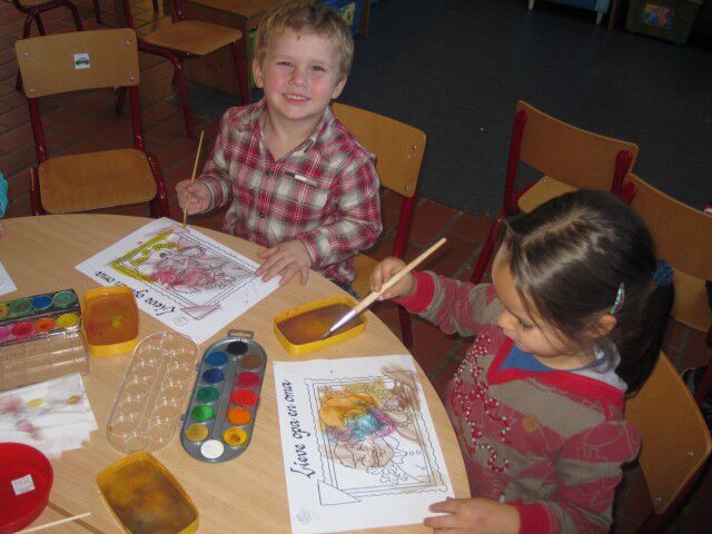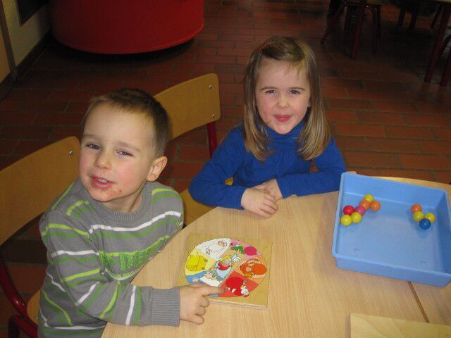 Op vrijdag 8 februari 2013 kwamen Jannick en Emilie een dagje meedoen in onze klas. Zij zitten in het 6de jaar Humane Wetenschappen in het VIIO in Tongeren. Jannick bouwde samen met de kleuters iets moois. Emilie hielp de kleuters met verkleden en schilderen. De kleuters vonden het heel fijn. Ze werden dadelijk dikke vrienden. Bedankt Emilie en Jannick om zo fijn met ons te spelen en mee te helpen