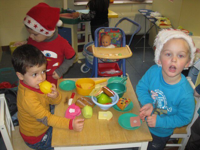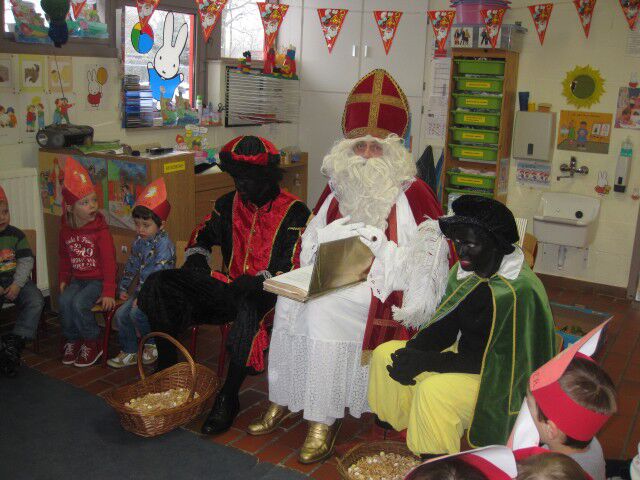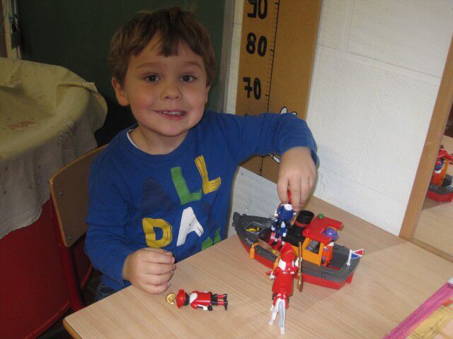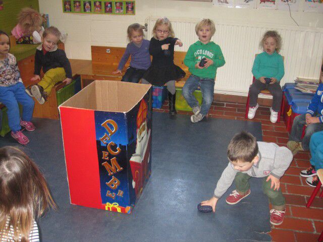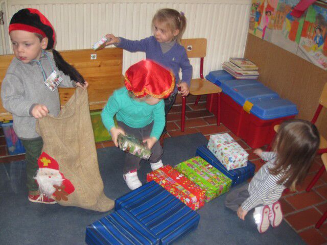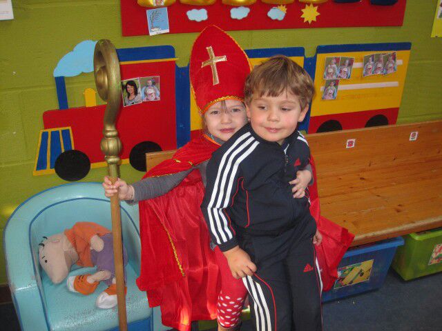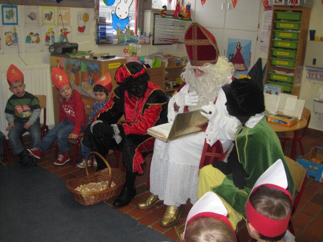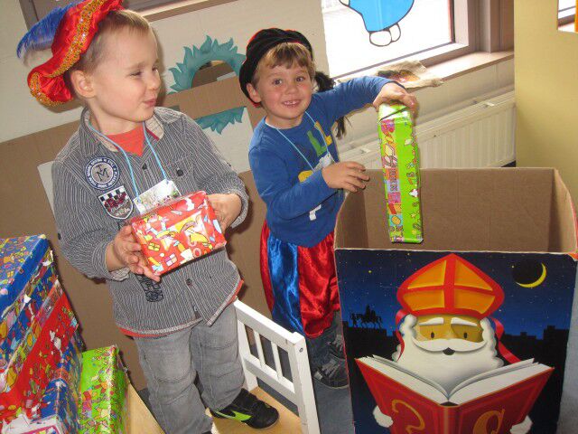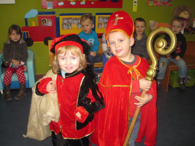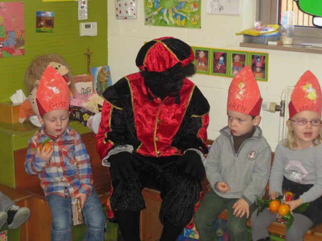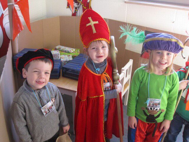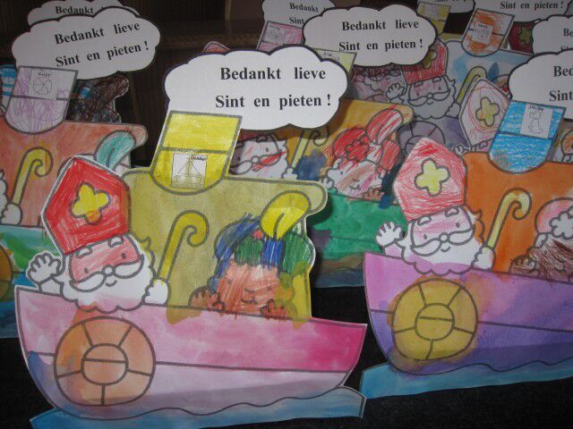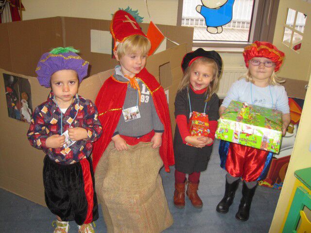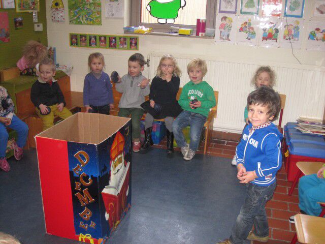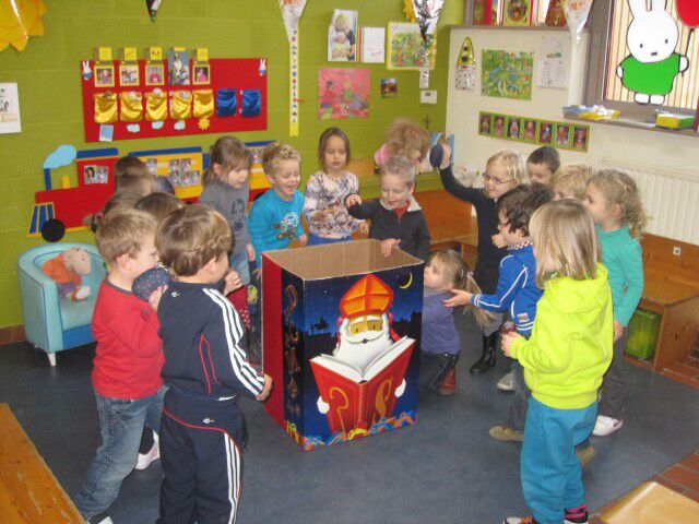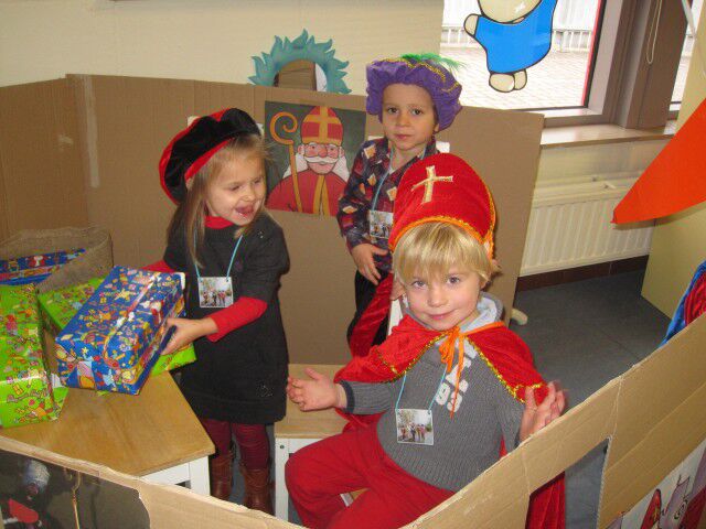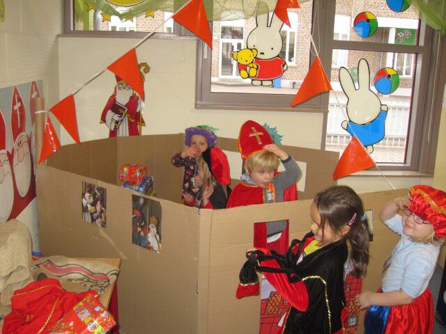In ons klasje is er een grote sinterklaashoek ingericht met de stoomboot, pakjes, kledij van sint en piet,een schoorsteen... Hier kunnen de kleuters de sint en zijn pieten nabootsen en naar hartelust spelen.