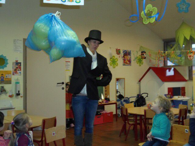 Clown PIPO was heel blij dat de kleuters zijn rode neus teruggevonden hadden.