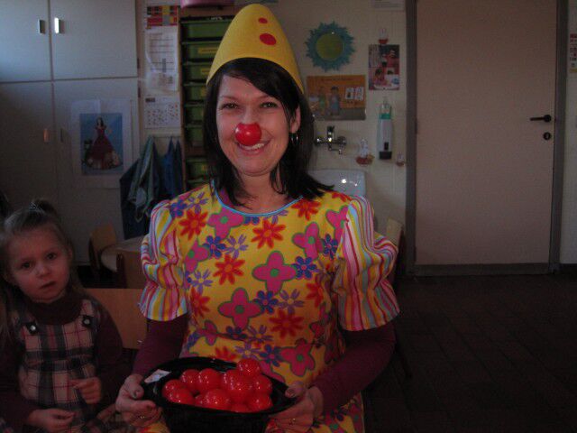 Clown PIPO was heel blij dat de kleuters zijn rode neus teruggevonden hadden.