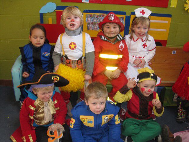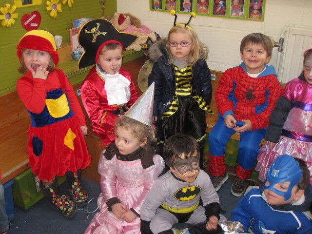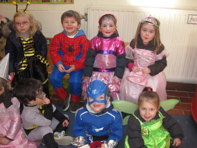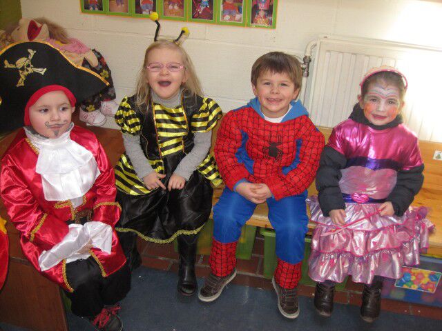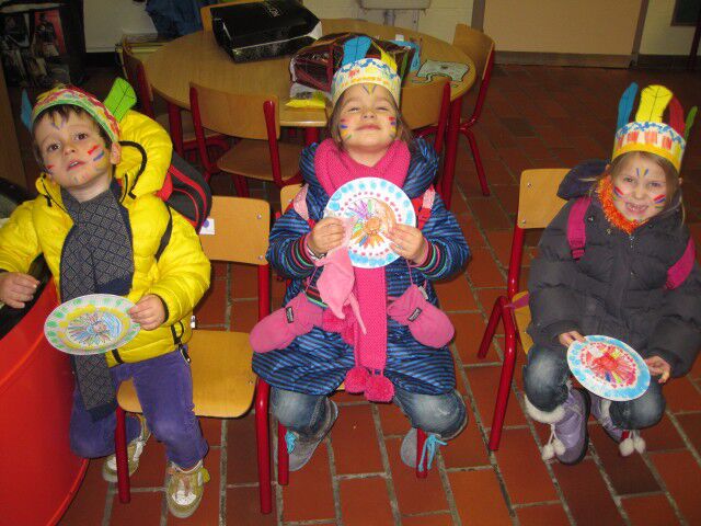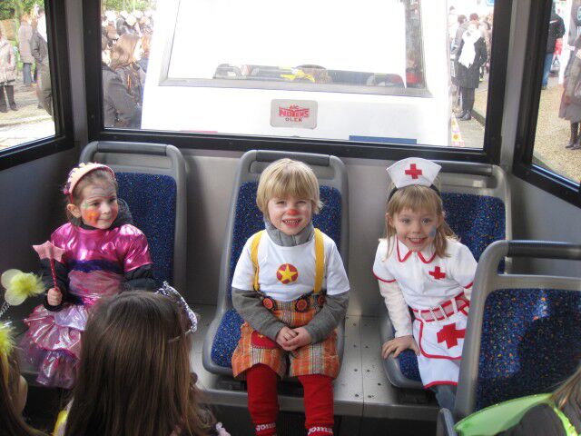 Zijn we niet allemaal mooi verkleed ? Klaar om met de carnavalstoet mee te gaan.
