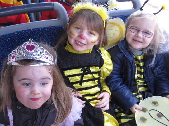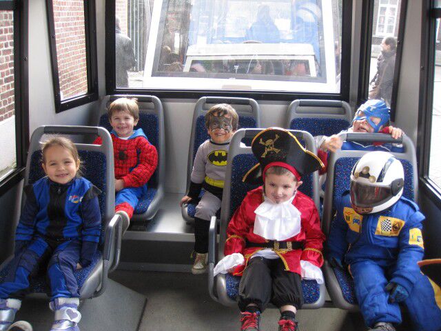 Mooi verkleed wachtten we om ons avontuur in het treintje aan te vatten.