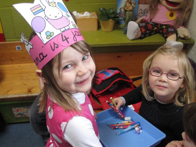 De kleuters kregen ook nog mooie pennen mee naar huis.