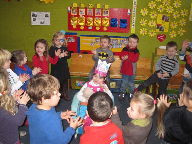 Wij dansten op het liedje: "Ik geef een feestje en feesten met zijn allen."