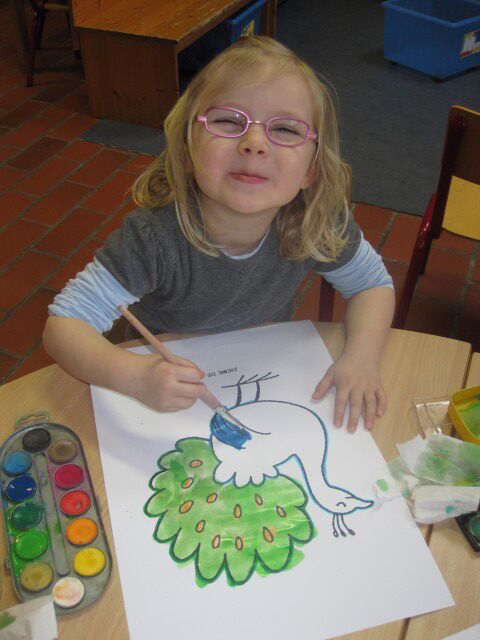 We schilderen de pauw " ZIEME " mooi in met waterverf.