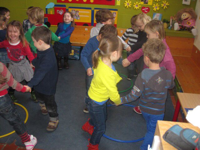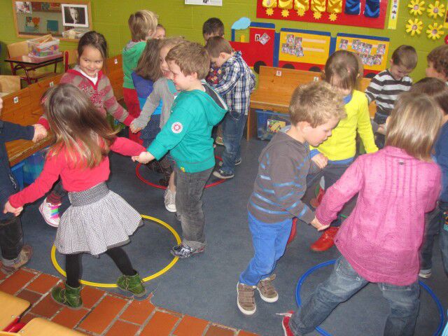 Spelenderwijs oefenden we de ruimtelijke begrippen in.