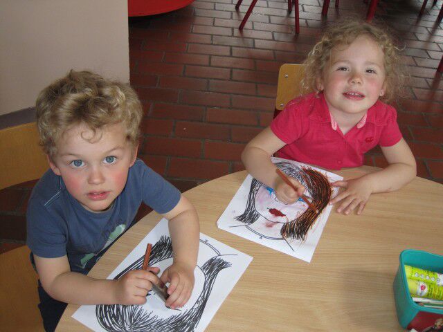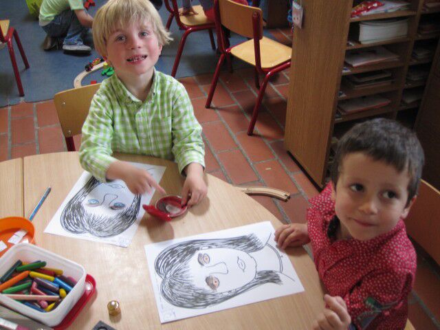 We mogen mama schminken op papier. We geven haar oogschaduw, rode lippen