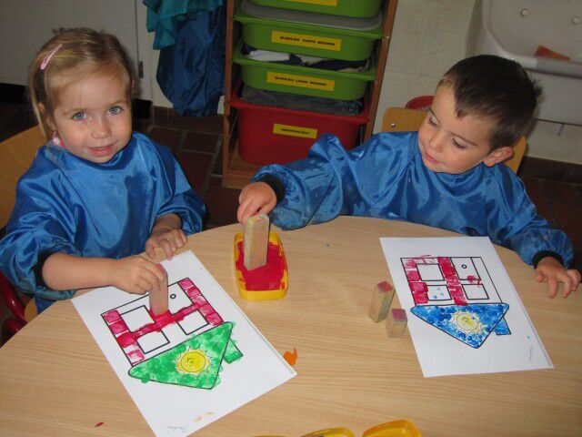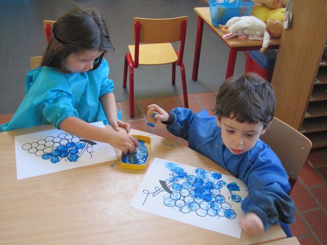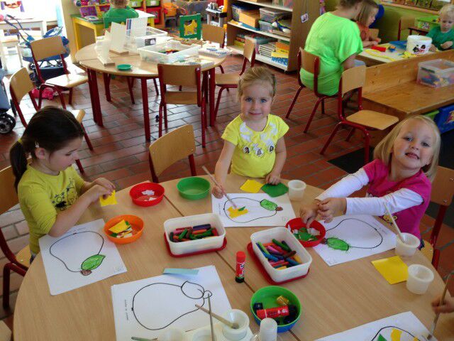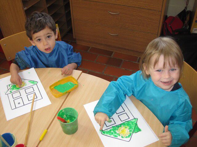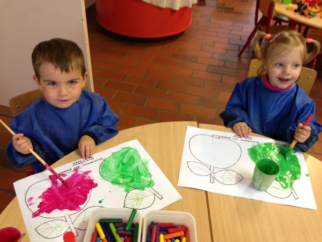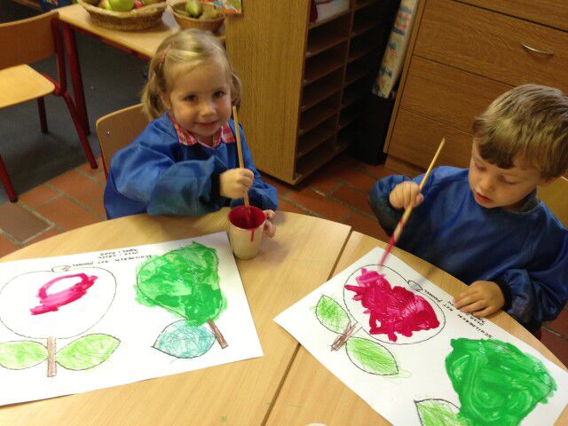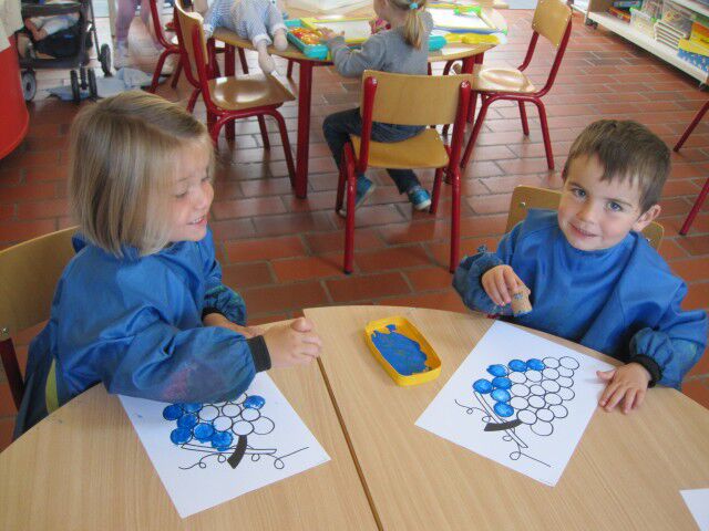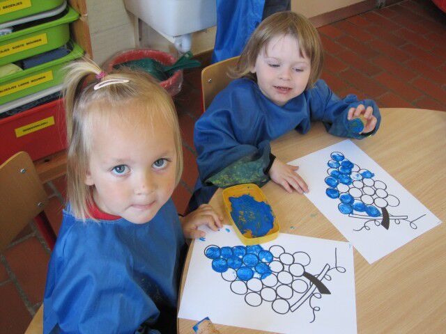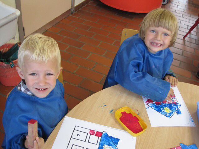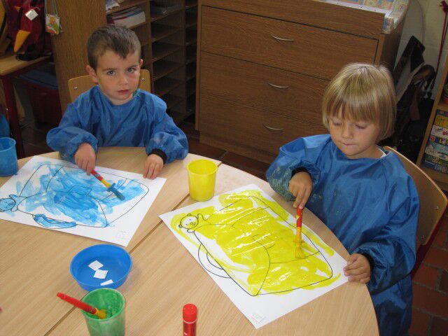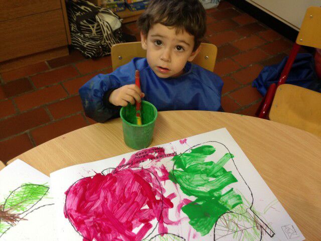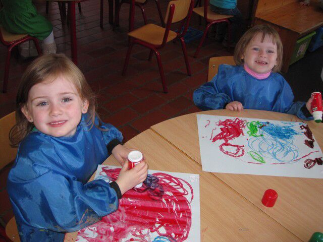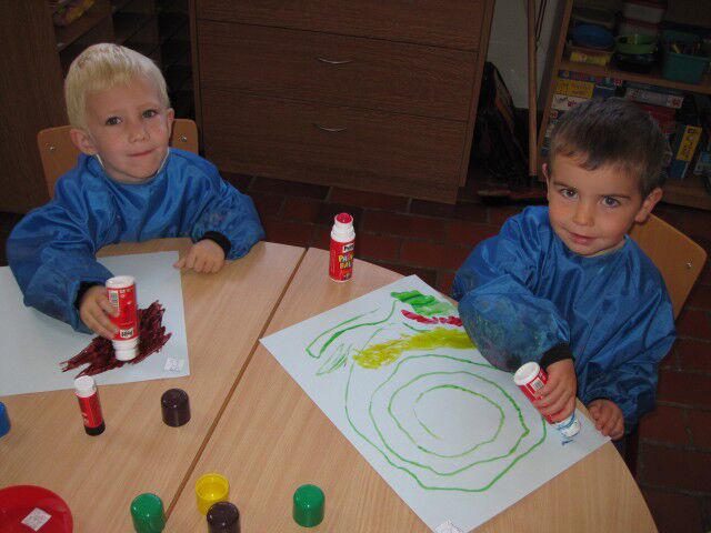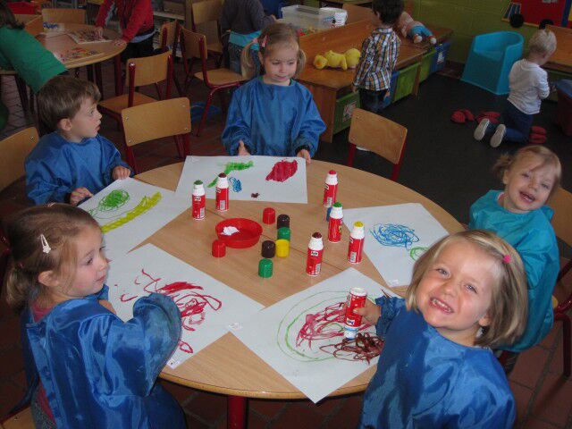 De kleuters kregen de kans om te schilderen met de prittrollers.
