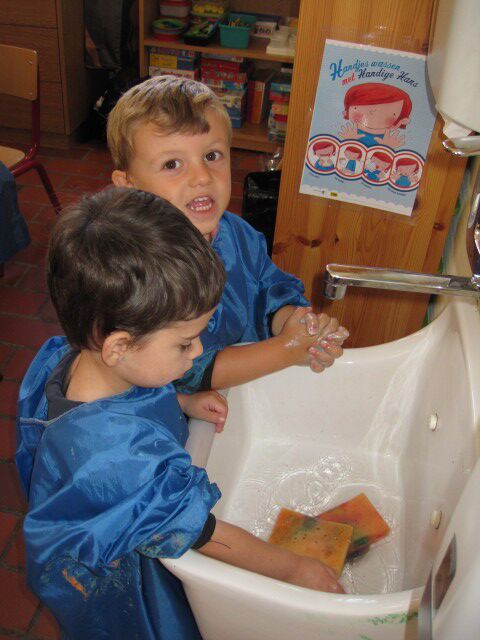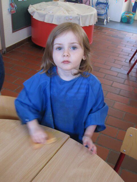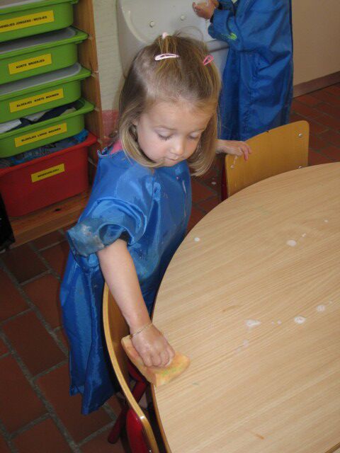 We mogen de tafel helpen proper maken want daar hangt verf op.