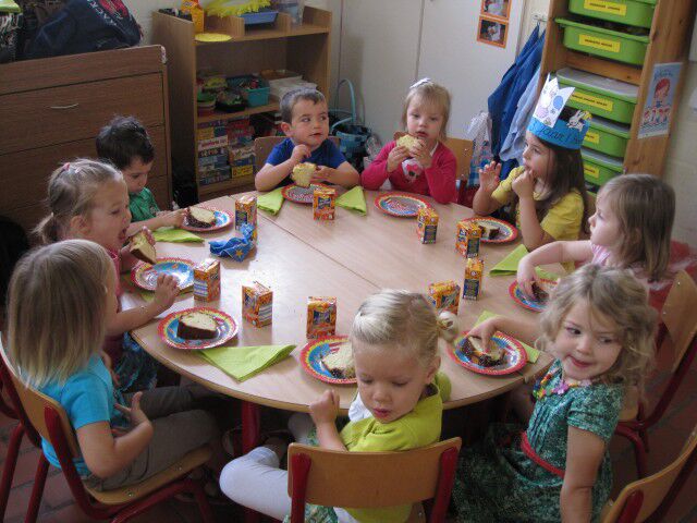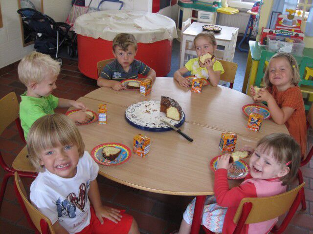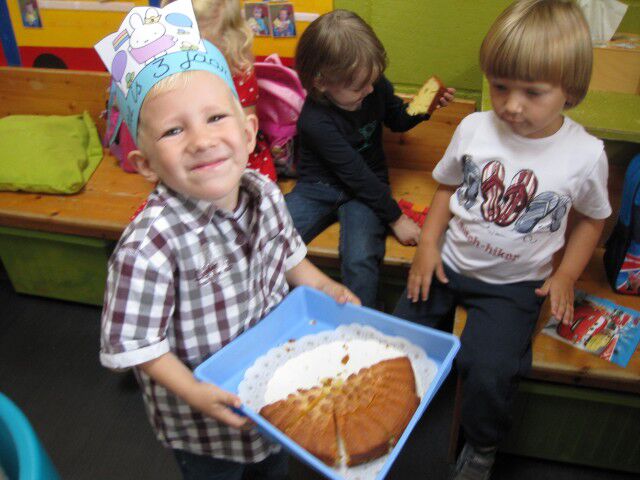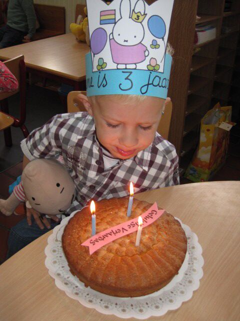 Hij trakteerde zijn klasvriendjes op lekkere taart.