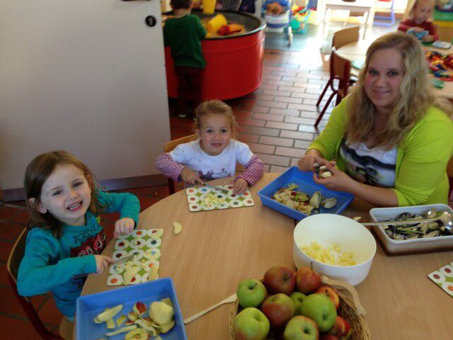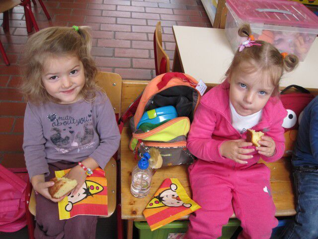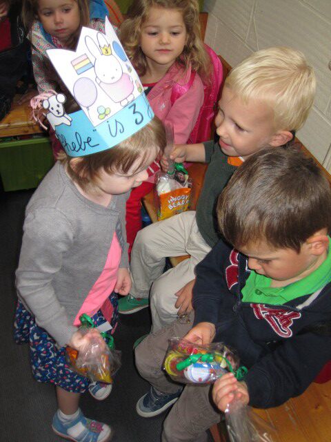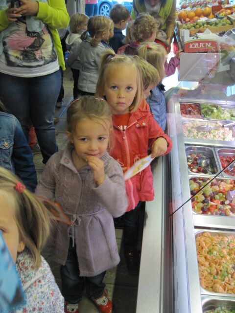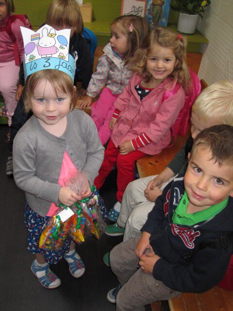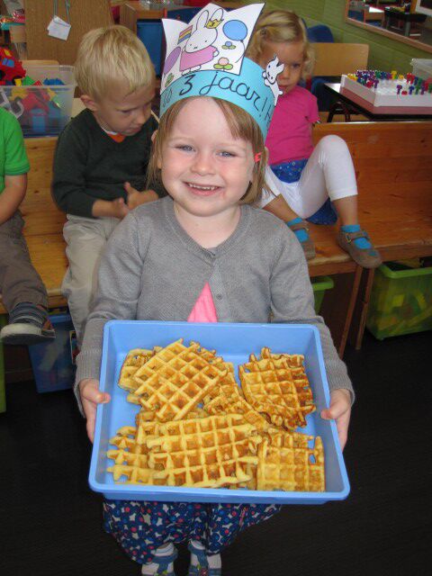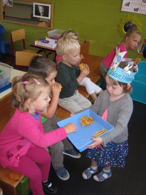 ze de kleuters op lekkere wafels en een mooi cadeautje !