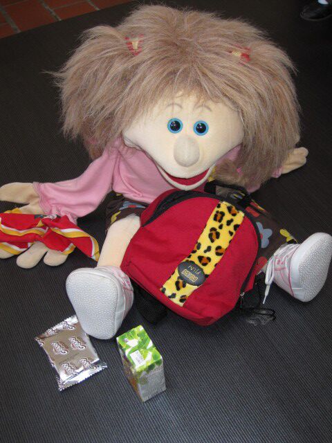 Hier gingen we allerlei opdrachtjes uitvoeren met onze boekentas.