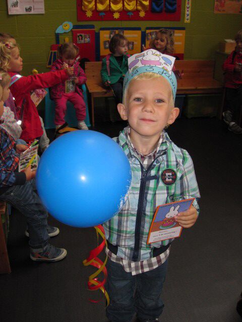 Van het klasje kreeg hij nog een mooie ballon en kaartje.
