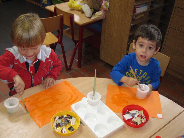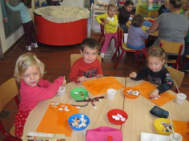 Maar vooral ons blad helemaal vol smeren met lijm vonden we superleuk.