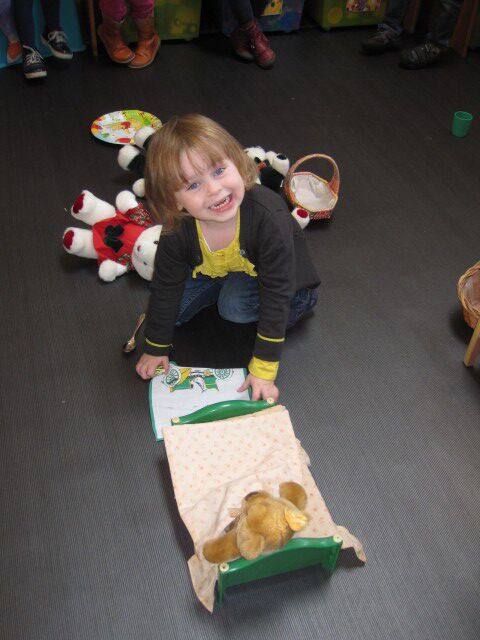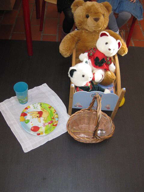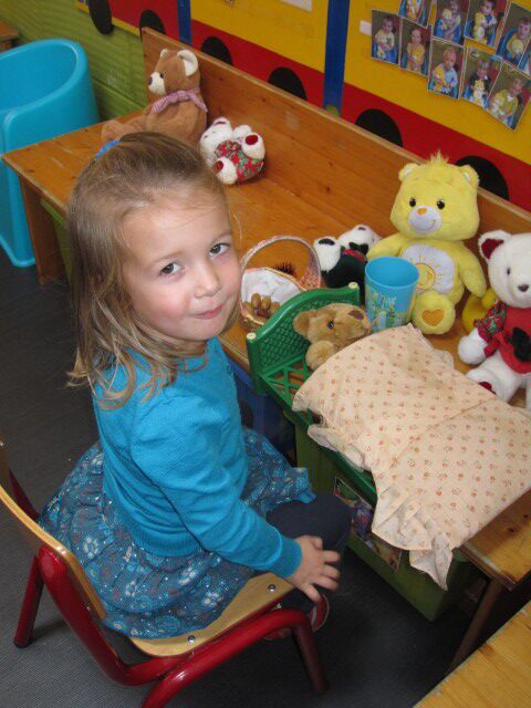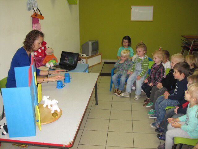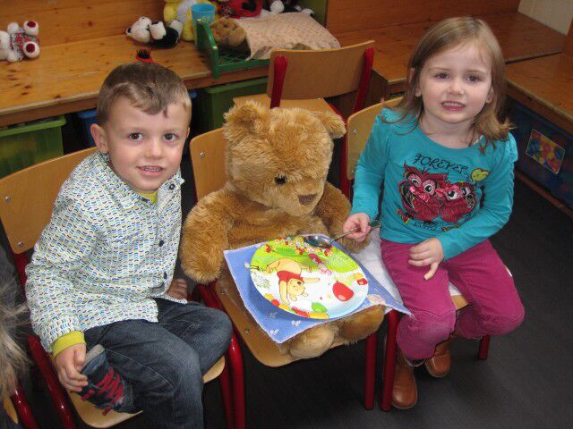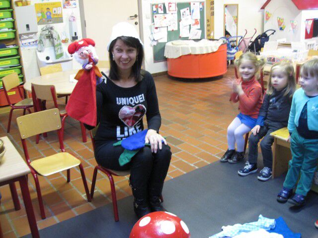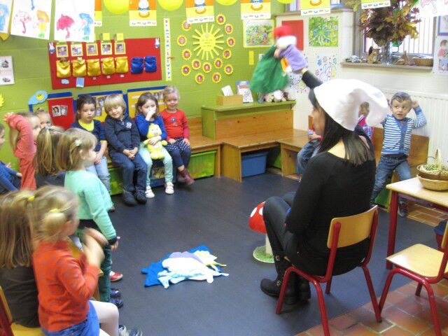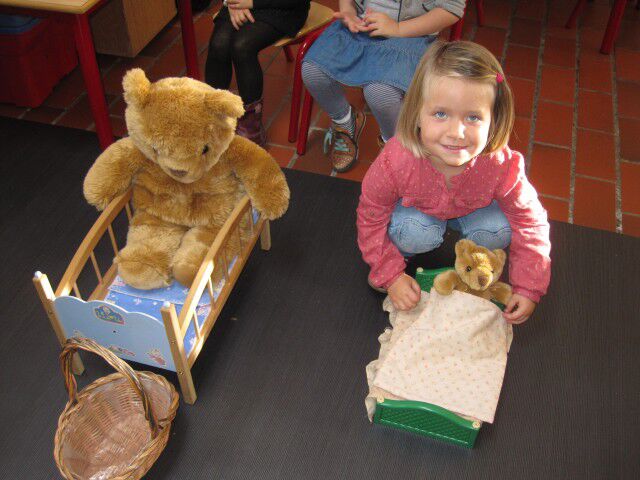 De juf vertelde het verhaal van " Goudlokje en de drie beren "