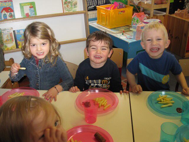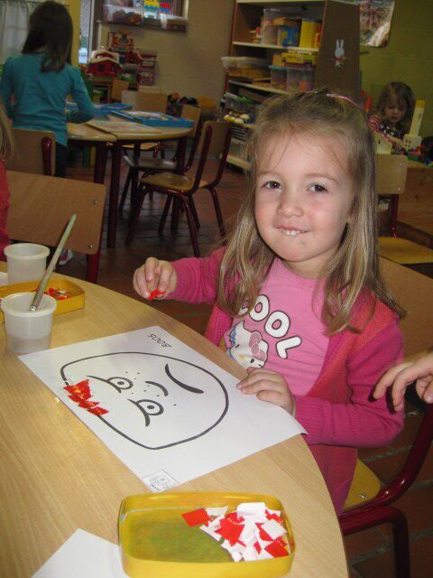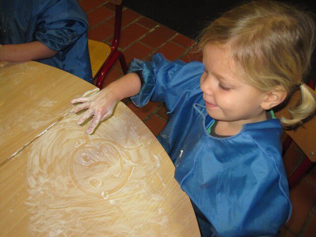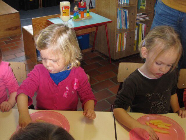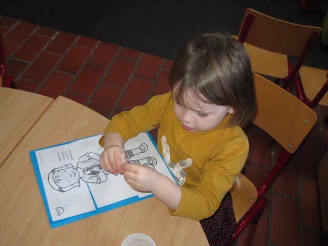 In de kring kreeg iedere kleuter een stukje en zo legden