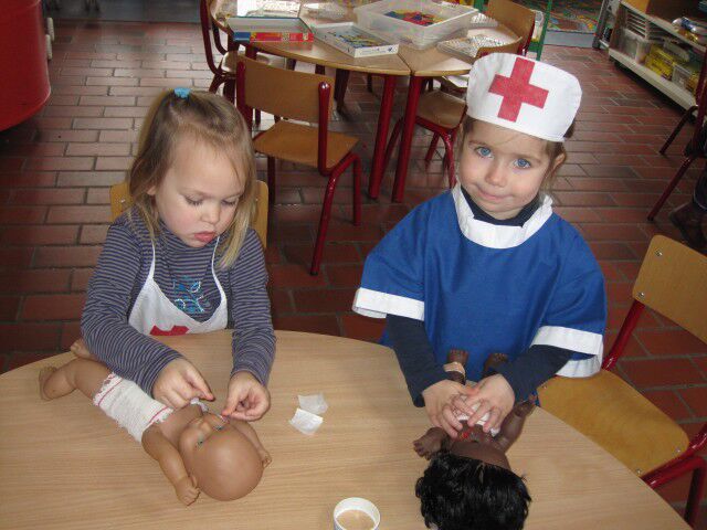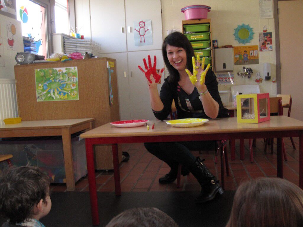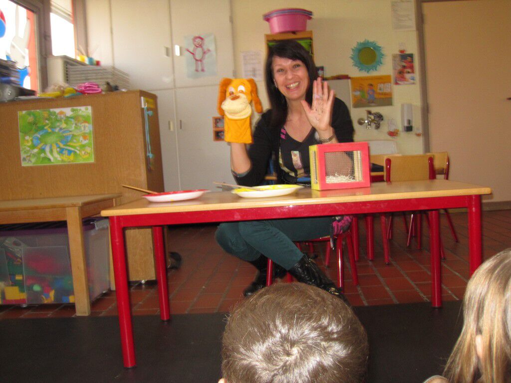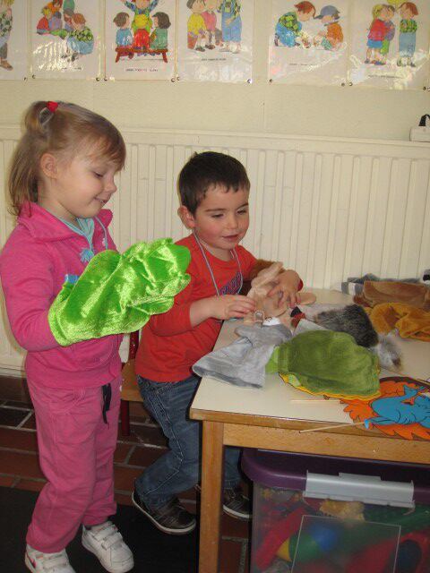 Spelenderwijs aan de hand van verhalen, spelletjes en de handpoppen