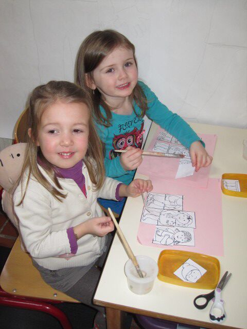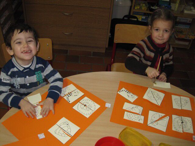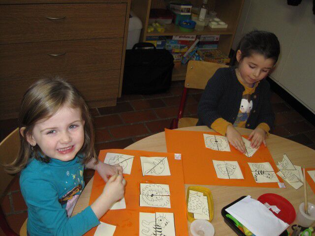Nadien gingen we zelf puzzels maken, we knipten de prentjes op