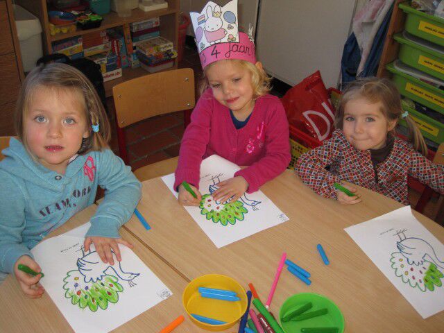 Zieme, de pauw, gingen we kleuren volgens opdracht.