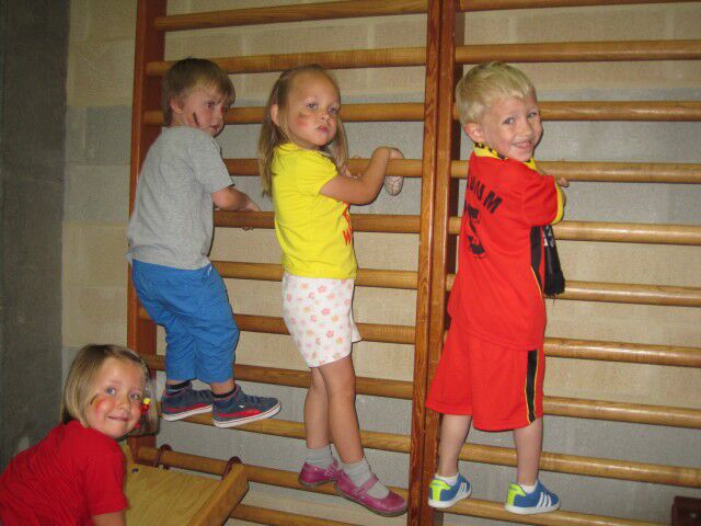 Vrijdag 20 juni 2014 vond onze jaarlijkse sportdag plaats. Dit jaar koos meester Kristof voor het thema " voetbal ". De kleuters mochten zich mooi verkleden in de Belgische kleuren.