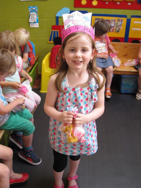 Eline is in de grote vakantie jarig en vierde haar 4 de verjaardag al in ons klasje. Samen zongen we en dansten we voor haar . Fier als een gieter deelde ze haar cadeautjes uit. Bedankt Eline voor alles !