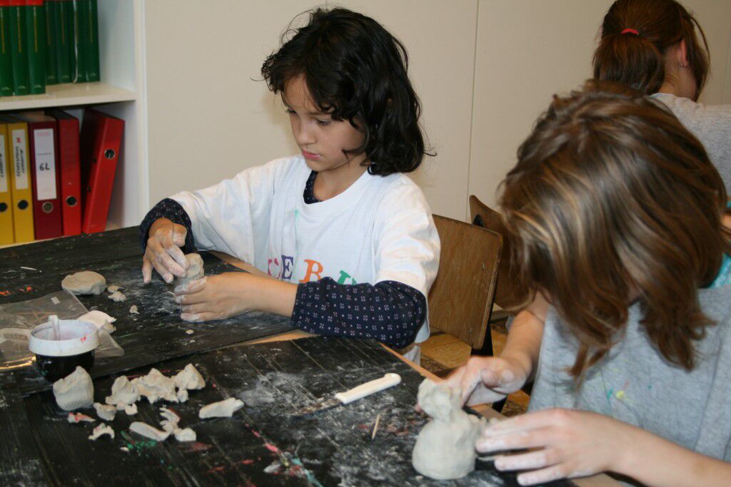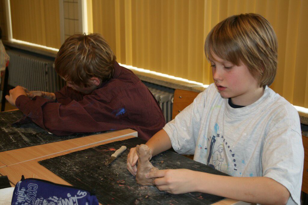 Daarna kregen we een rondleiding in de werkateliers en mochten we zelf al wat proberen.