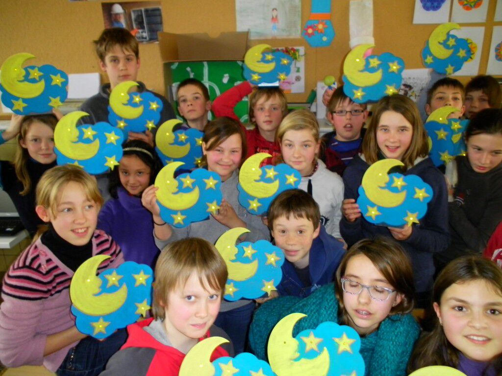 Uitkijken naar de deur- of muurversiering bij de 6de klassers thuis.