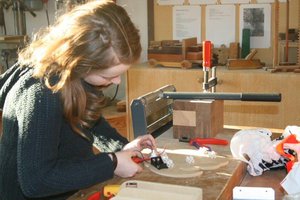 We gingen eerst naar de afdeling mechanica. Daar gingen we een staander maken voor ons lampje.