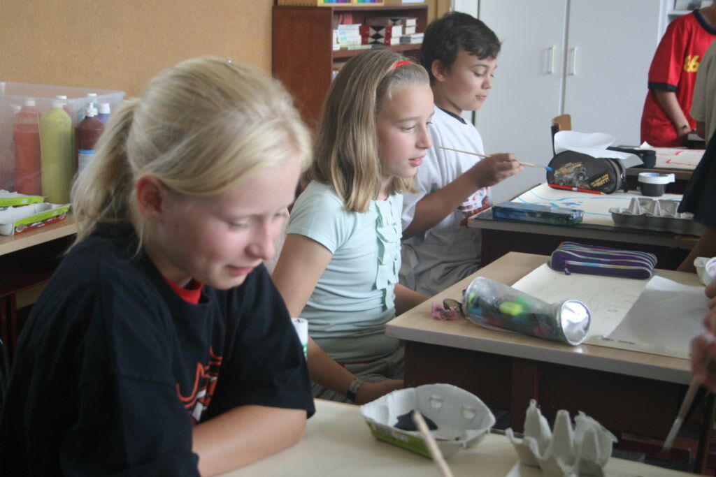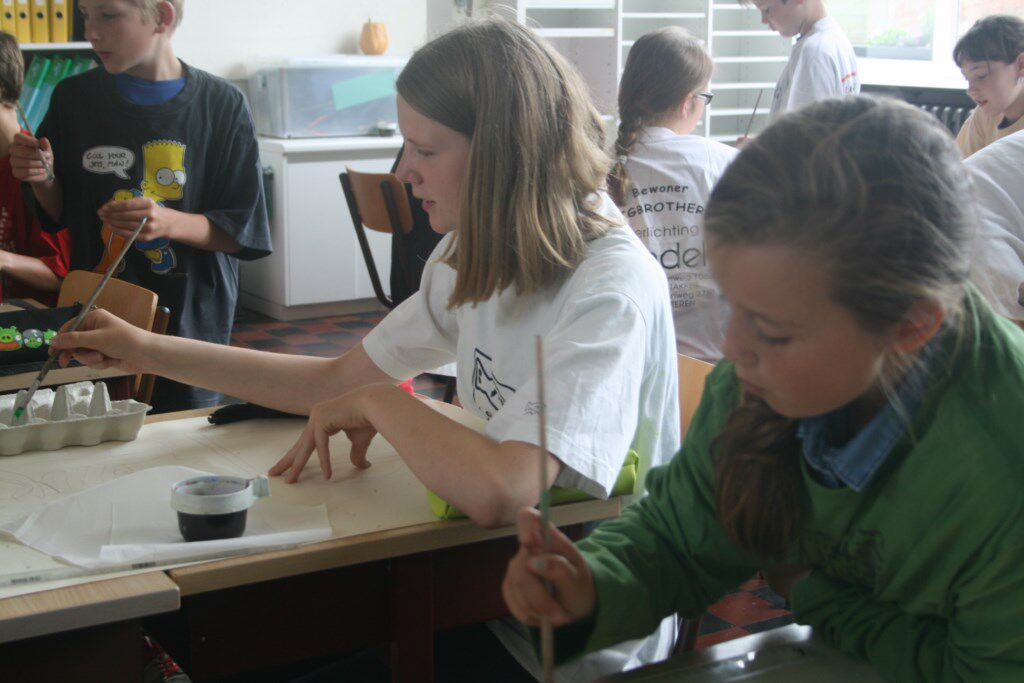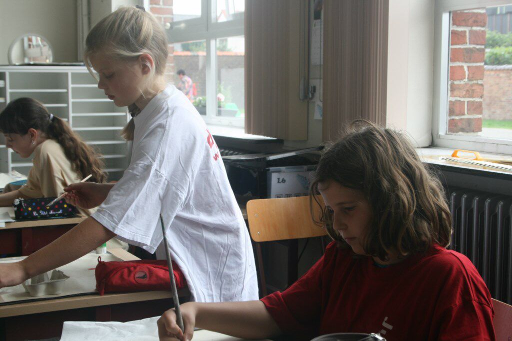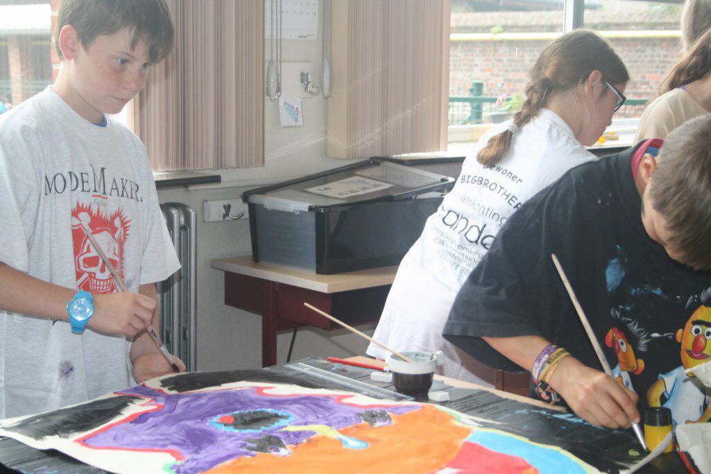 Daarna gingen we naar het kunstenaarsduo Alain Cool en Christine Cosyns. Hun atelier bevindt zich in de Westkantstraat, op de plaats waar vroeger de Westkantmolen stond. We maakten kennis met verschillende technieken : acryl, olieverf, monumentale sculpturen in metaal.