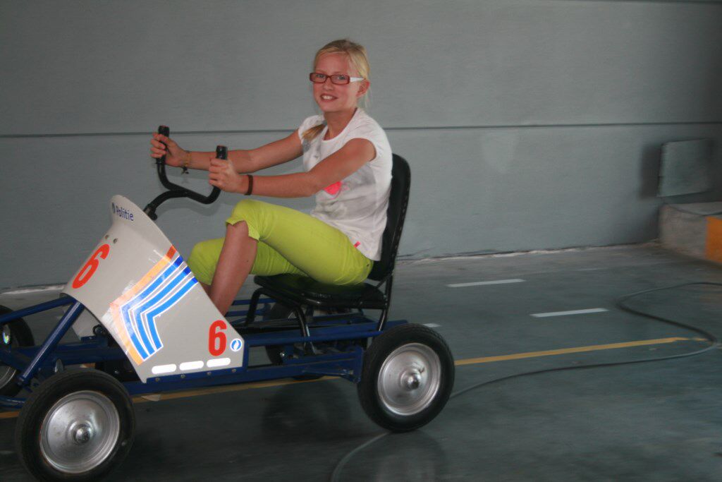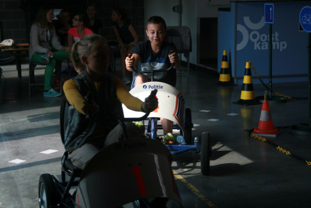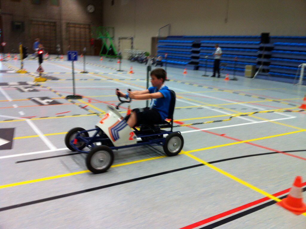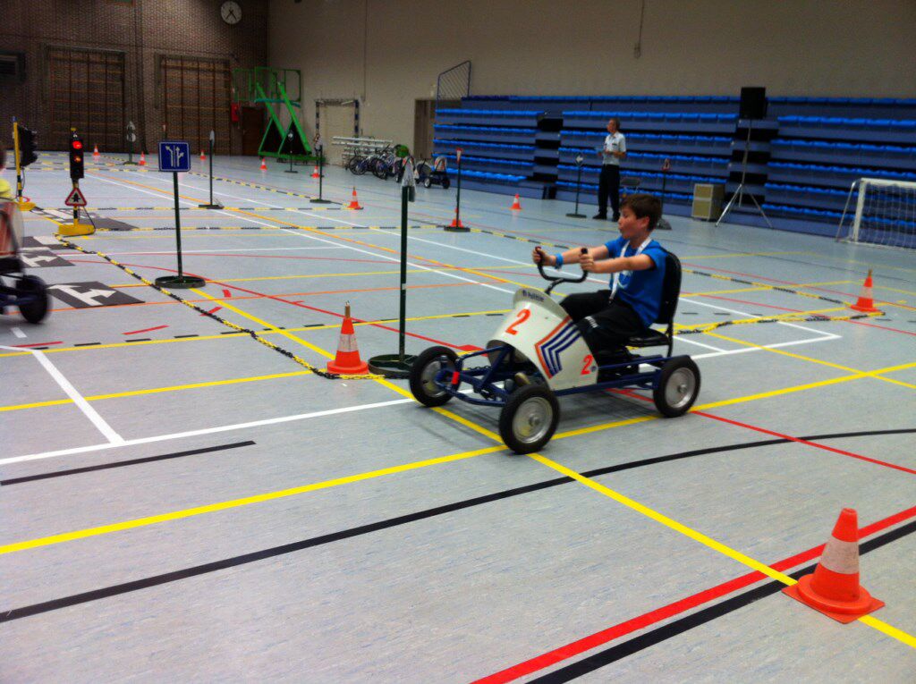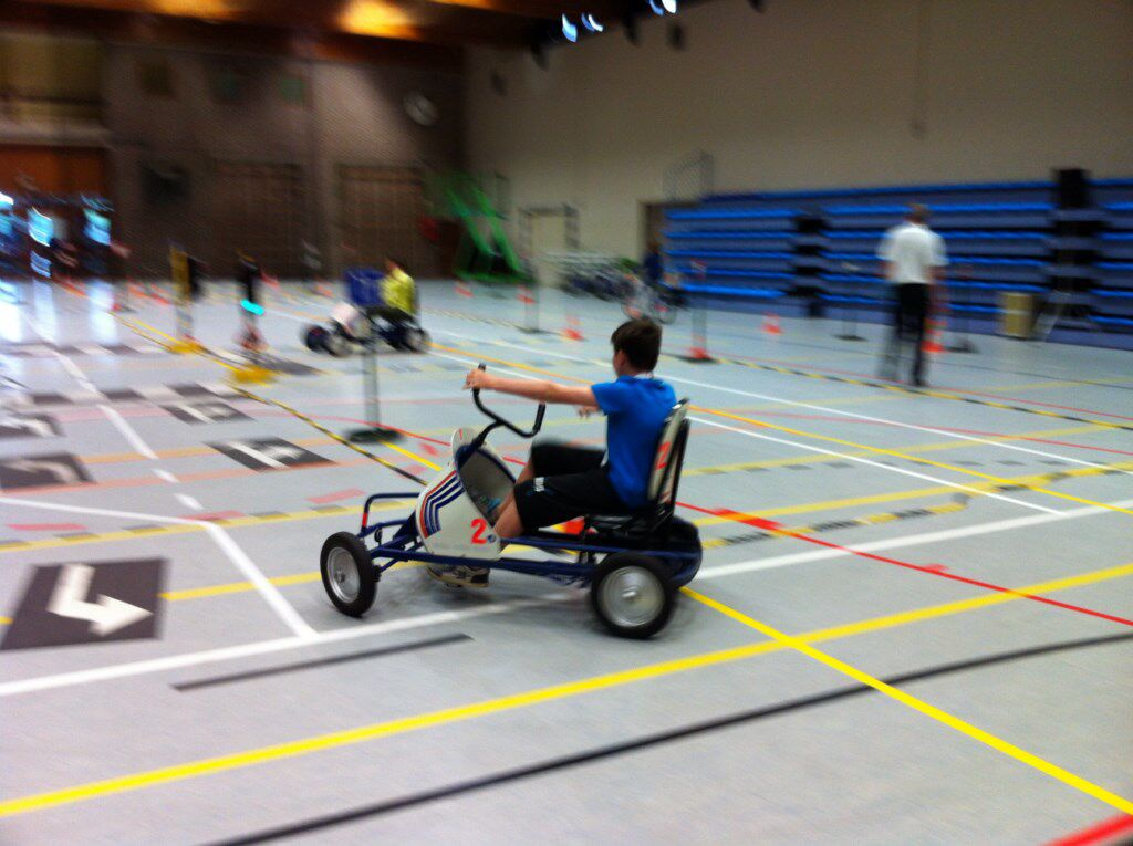 Na de inoefening kwam de wedstrijd. Wie een fout maakte, werd uit het "verkeer" gehaald.