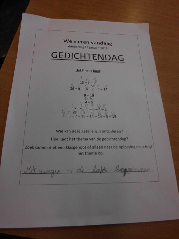 Daarna kregen we allemaal een bundeltje met prachtige gedichten, elk gedicht werd expressief voorgelezen.